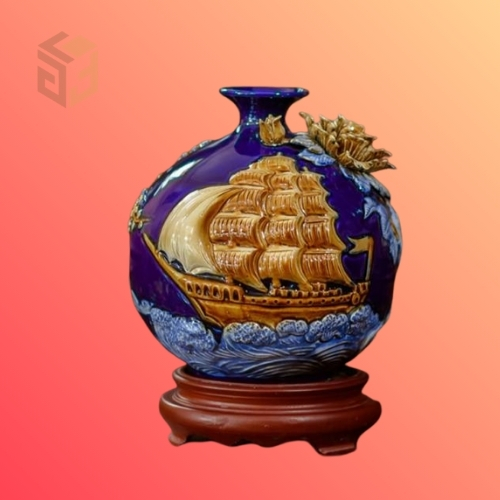 Bình Tài Lộc Vẽ Họa Tiết Cát Tường: Các chủ đề như “Thuận Buồm Xuôi Gió”, “Mã Đáo Thành Công”, “Vạn Sự Như Ý” được nghệ nhân khắc họa tỉ mỉ.