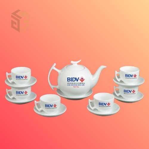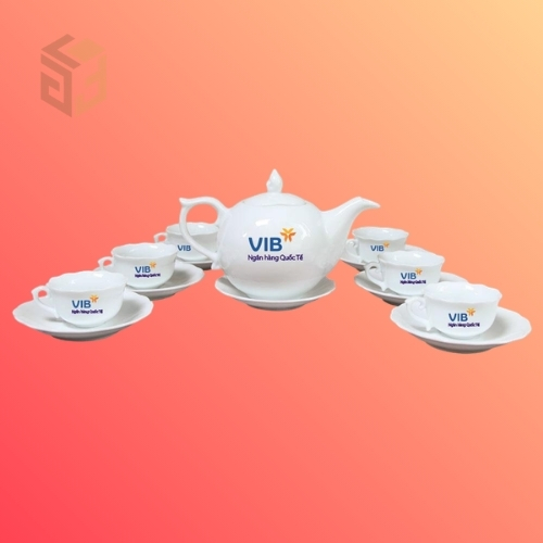 Diện tích in ấn nổi bật: Thân ấm và lòng chén là vị trí “vàng” để khẳng định thương hiệu. Logo in ấn rõ nét, màu sắc chuẩn xác giúp nâng tầm vị thế của đơn vị tặng quà.