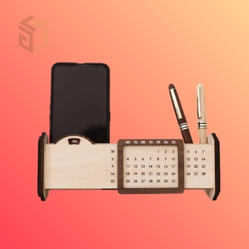 2. Lịch Gỗ Để Bàn Tích Hợp Cắm Bút: Sự kết hợp đa năng giữa lịch xem ngày, khay đựng bút và ngăn chứa danh thiếp, giúp bàn làm việc luôn gọn gàng.