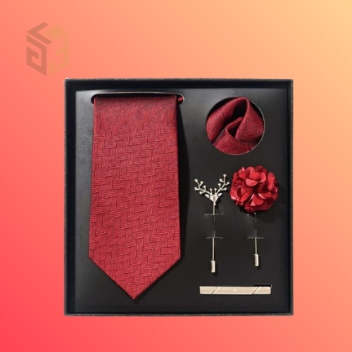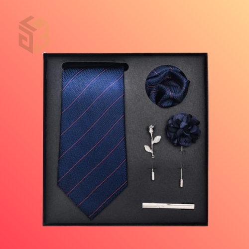 Sự kết hợp hoàn hảo (All-in-one): Một set quà tặng đồng bộ bao gồm: Caravat, khăn túi áo vest, măng sét (cufflinks) và kẹp caravat. Sự đồng điệu này tạo nên một diện mạo không tì vết.